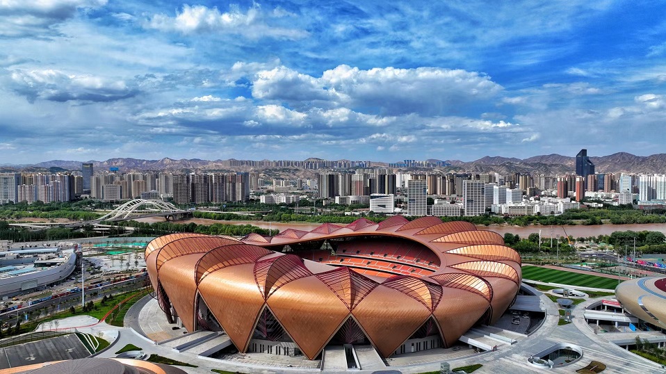 由中國十七冶承建的蘭州奧體中心,采用“飛天花舞”設(shè)計理念,建筑猶如五朵花舞動于絲綢之路上,總建筑面積46.6萬平方米,由60000座玫瑰體育場、8000座郁金香綜合館、3000座百合游泳館、3000座荷花網(wǎng)球館、蘭花運動員公寓等單體組成。其中郁金香綜合館弦支穹頂是世界上首個吊掛大噸位斗形屏(40t)的矢跨比小于1/12的90米級大跨度弦支穹頂結(jié)構(gòu)工程。