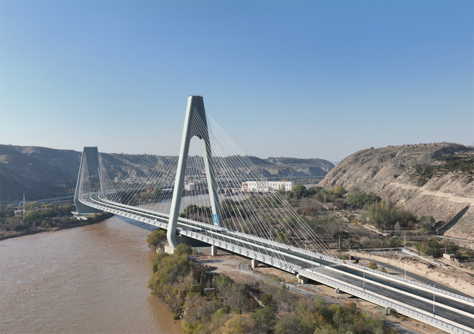 由中國二冶承建的蘭州柴家峽黃河大橋,是目前國內(nèi)曲率半徑最小跨度最大的“S”型曲線雙塔跨黃河斜拉橋。該橋為“A”字型高低塔斜拉索鋼箱梁橋結(jié)構(gòu),橋長1250米,共設(shè)置56對平行鋼絲斜拉索。大橋構(gòu)筑了蘭州東西向貫穿城市的核心綠脈,對帶動城區(qū)經(jīng)濟和城市向外拓展具有十分重要的使命,同時也為“絲綢之路”經(jīng)濟帶建設(shè)提供重要支點。