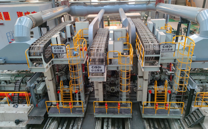 由中冶賽迪提供全線關(guān)鍵工藝、裝備及控制技術(shù)的首條中國自主化大型萬能重軌、型鋼生產(chǎn)線河北永洋特鋼重軌萬能連軋生產(chǎn)線,打破了萬能軋機工藝及裝備技術(shù)長期依賴進口的局面,有效解決了軌道用鋼領(lǐng)域“卡脖子”難題,大大推動了我國軌道用鋼生產(chǎn)工藝及裝備技術(shù)進步。
